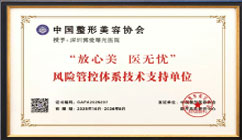 榮獲深圳老字號、深圳市“醫療服務品質評價A級單位”、深圳市健康促進醫院(銀獎單位)、 中國整形美容協會會員單位、“放心美 醫無憂”風險管控體系技術支持單位等榮譽。